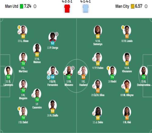 除了在防御端问题,进攻端的全面哑火也导致曼城输了。瓜迪奥拉的球队本场在进攻端表现堪称灾难,头号射手哈兰德全场仅有14次触球,在马丁内斯等人的重点盯防下彻底“隐身”,并在比赛末段被提前换下。曼城全队仅有一脚射正,预期进球值(xG)低至0.45,这是瓜迪奥拉执教曼城九年来的第二差纪录。数据显示,曼联此役的预期进球高达3.81,曼城在数据层面遭遇了一场彻底的碾压。